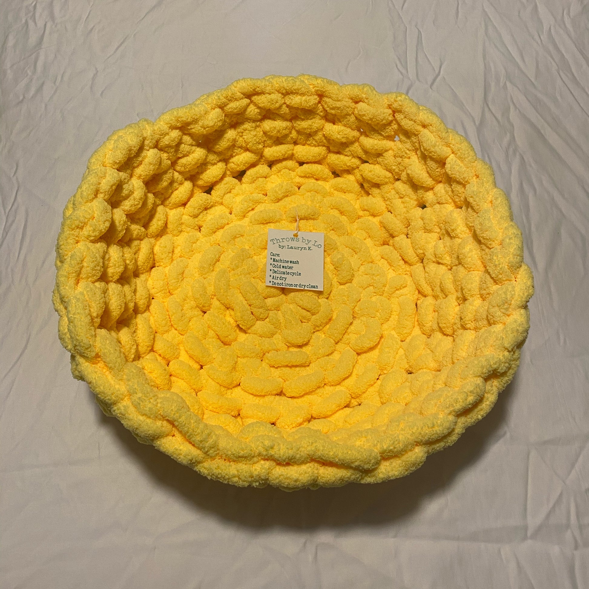 This super soft cat bed is for the larger, fluffier cats out there! It is handmade with two skeins of 100% polyester chunky chenille yarn and is 2/3 inch thick. Available in a variety of colors. *May take 2-3 weeks to ship depending on supplier stock and shipping time.