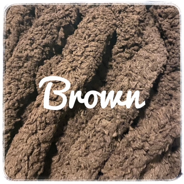 Simply LK throw blankets are made from 100% polyester 2/3 inch thick chunky chenille yarn. They are soft, cozy, warm, fuzzy, and breathable! It takes six skeins to make these 40 X 57 blankets. You can choose up to 6 different colors or just stick to the modern one color for all six skeins.